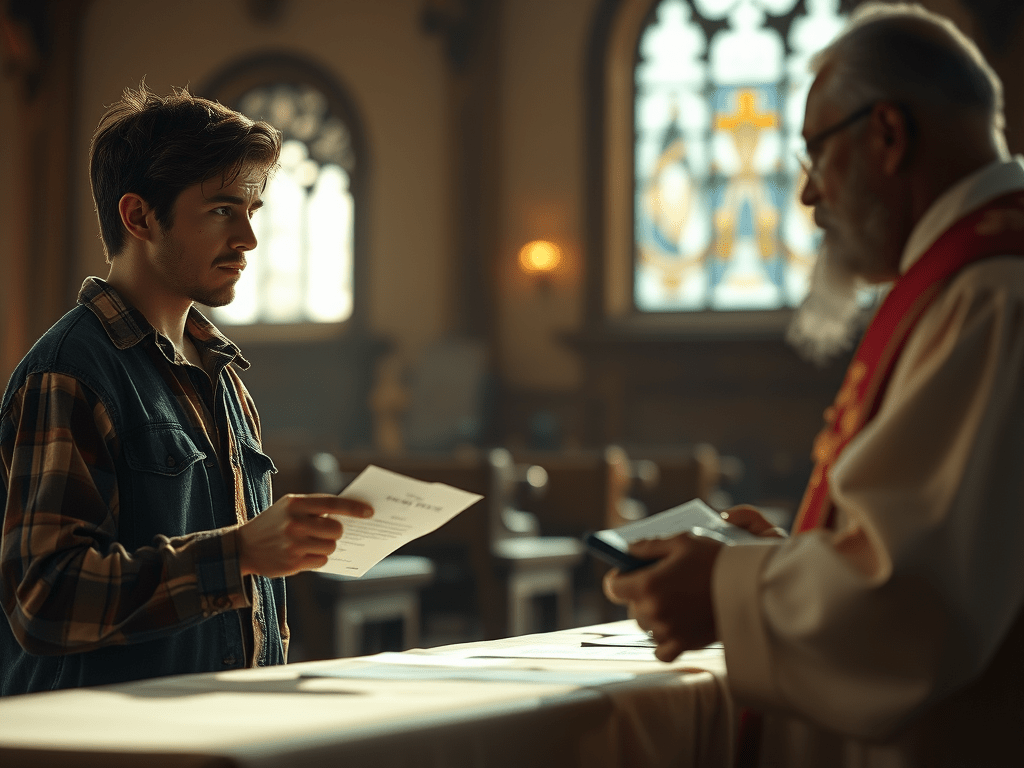 “Please state your need and how we may assist you,” Father Sampson said, stepping in smoothly when Evalie hesitated, visibly overwhelmed.